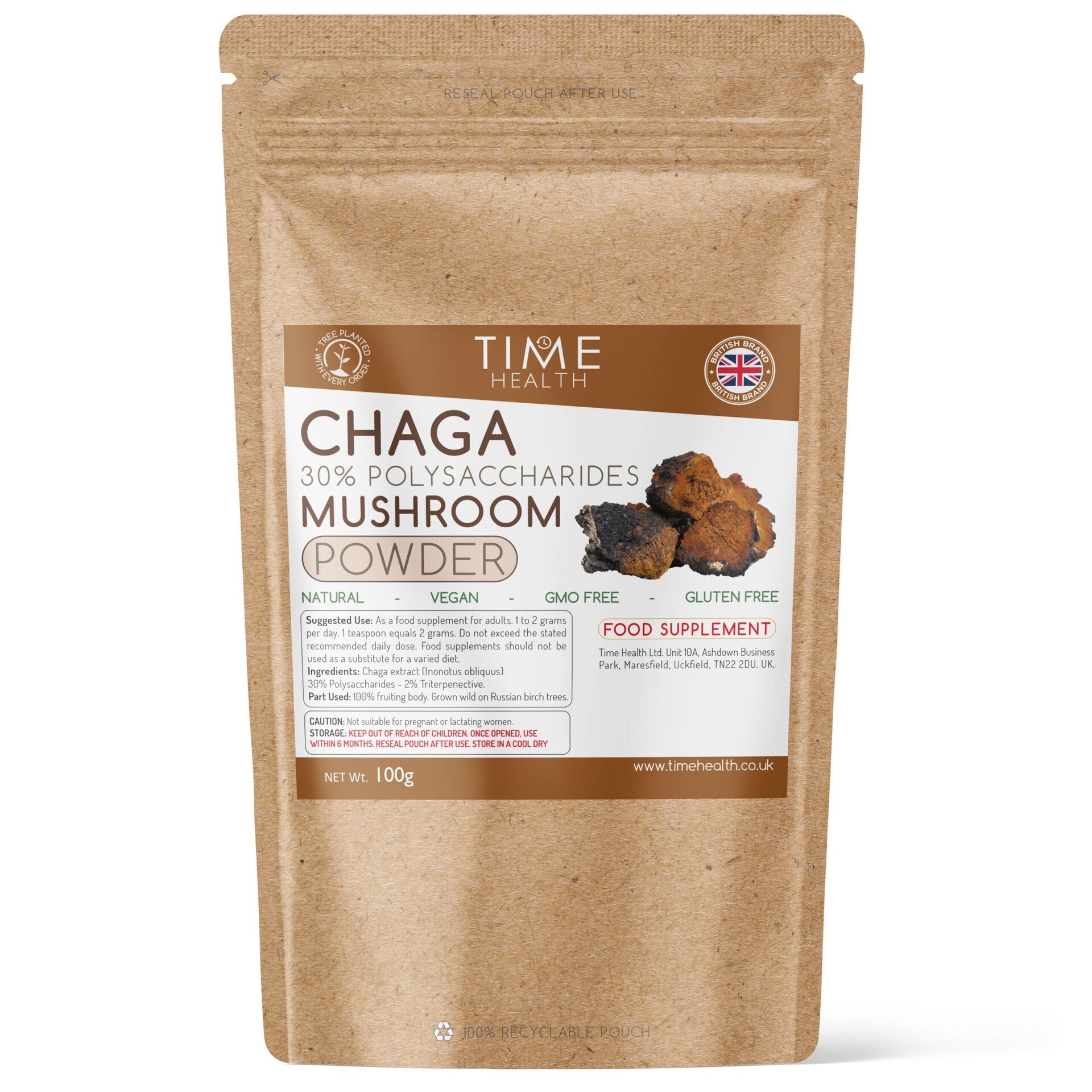 Chaga is rich in fibre and essential nutrients, including iron, potassium, vitamin D, manganese and calcium. It also has a high melanin content which some believe can strengthen the melanin naturally found in skin and therefore protect it from sun damage, skin cancer, wrinkles and ageing. It is also considered to have numerous health benefits such as fighting inflammation, alleviating arthritis, lower blood pressure and reduce blood sugar.