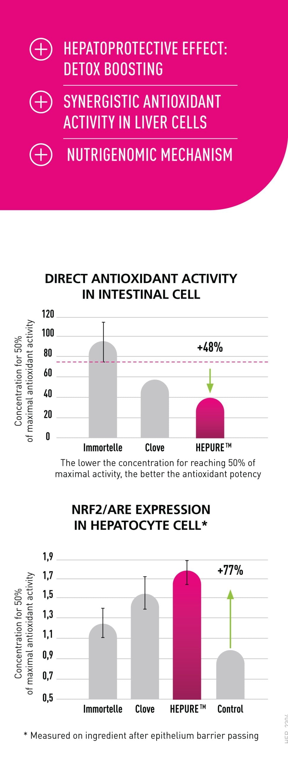 ✔️MADE WITH HEPURE™. A synergistic formulation of Clove and Immortelle extracts providing hepatoprotective and detoxifying action for complete liver support.