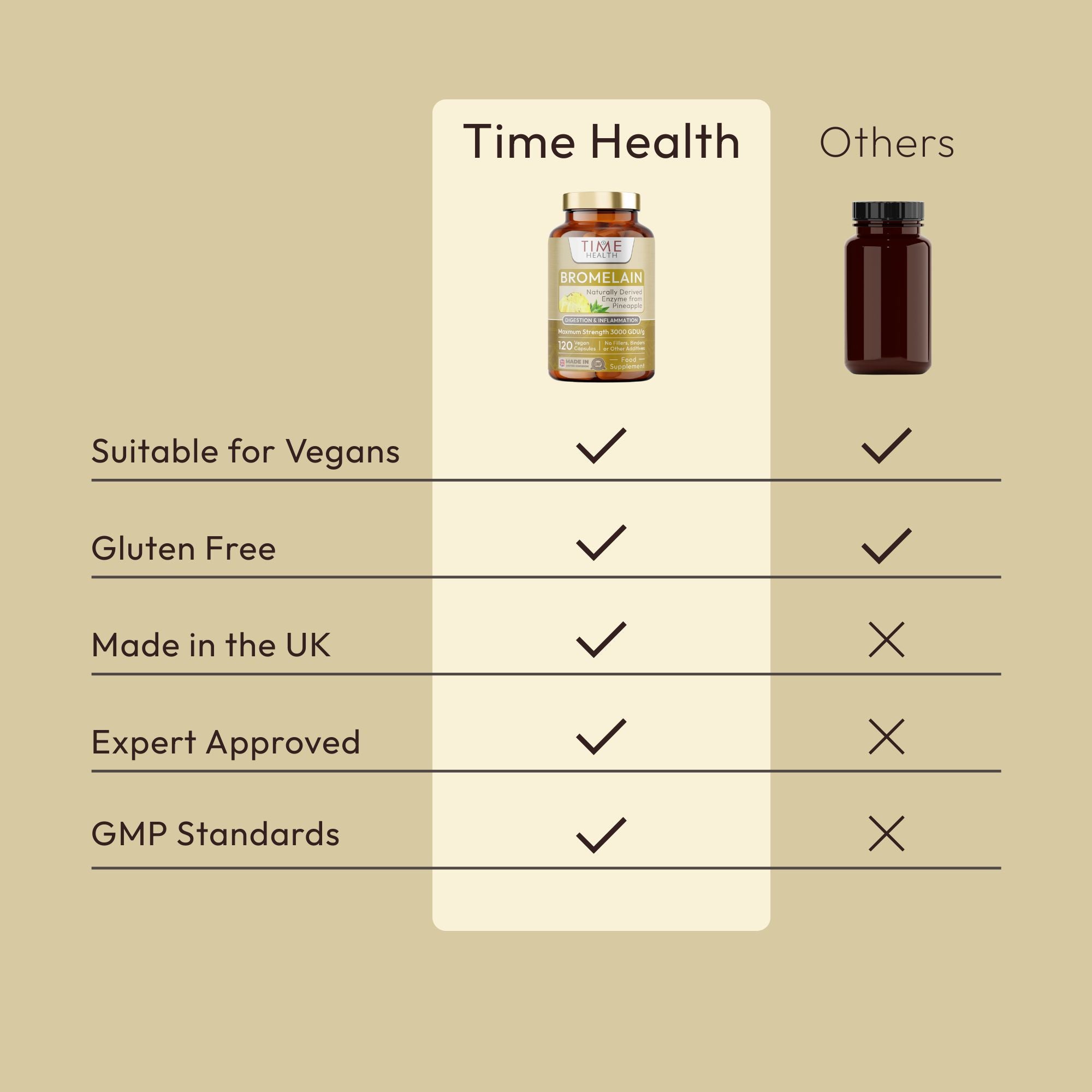 ✔️100% VEGAN WITH NO FILLERS, BINDERS OR ADDITIVES. At Time Health we believe in clean nutrition which is why you won’t find any nasty stuff in our products including any binders, fillers or additives, unlike some of our competitors.