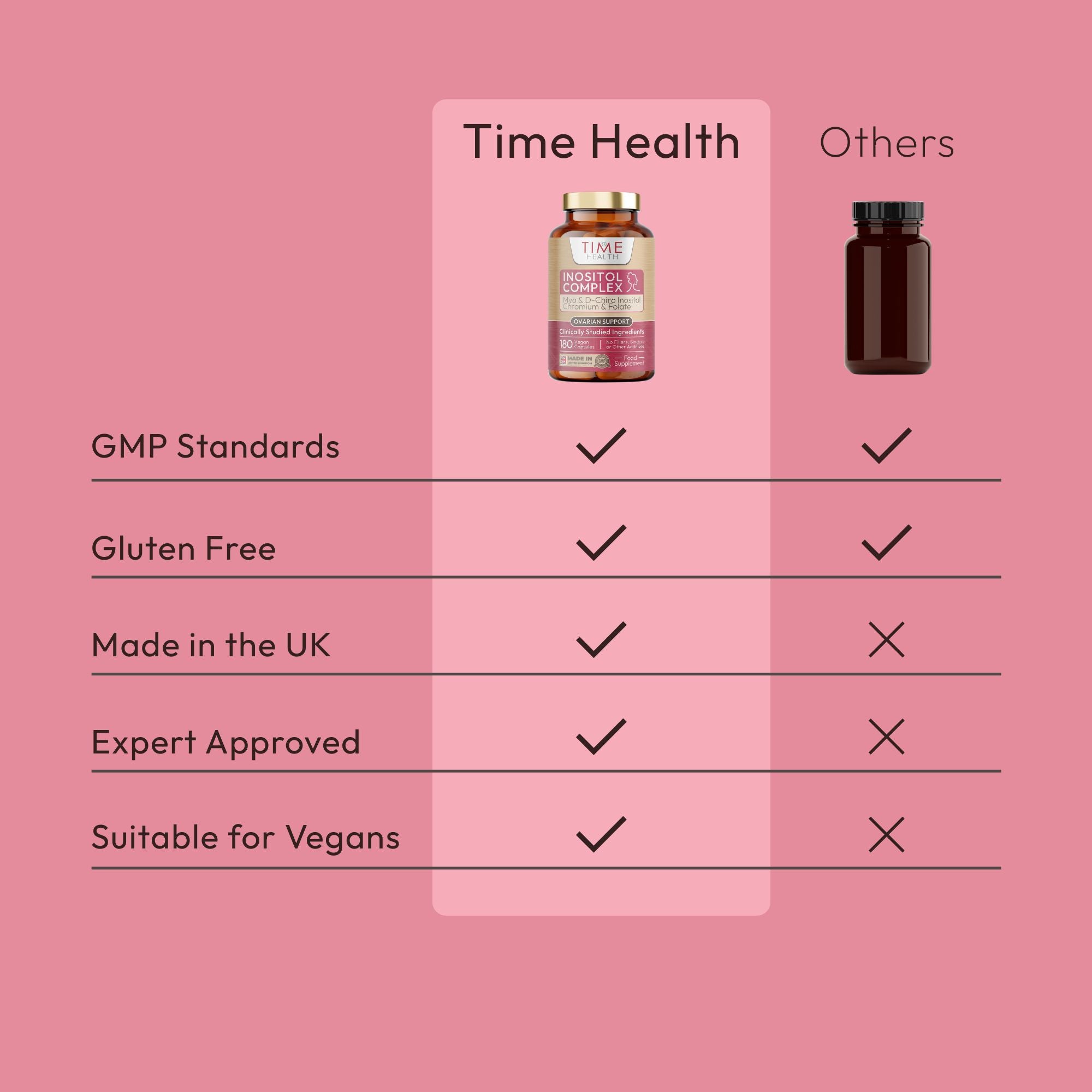 ✔️SUPPORTS WOMEN WITH PCOS. Time Health Inositol Complex is specially designed for women living with PCOS. Containing a carefully considered blend of myo-inositol, d-chiro-inositol, folate and chromium in their optimum levels, our Inositol Complex helps to support healthy hormonal balance, ovarian function, and the normalisation of key parameters.