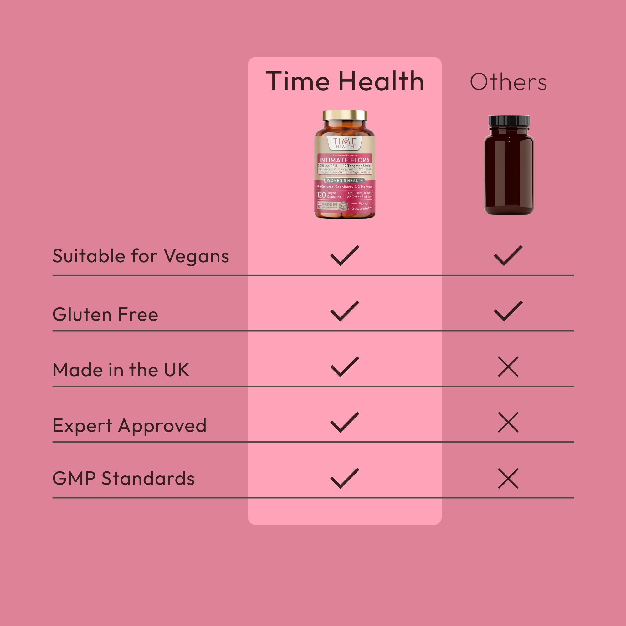 "Intimate Flora's ingredients work together to support both a healthy vaginal microbiome and urinary tract. By helping to maintain a slightly acidic environment, they play a key role in protecting against common issues such as bacterial vaginosis, thrush, and recurring UTIs.”