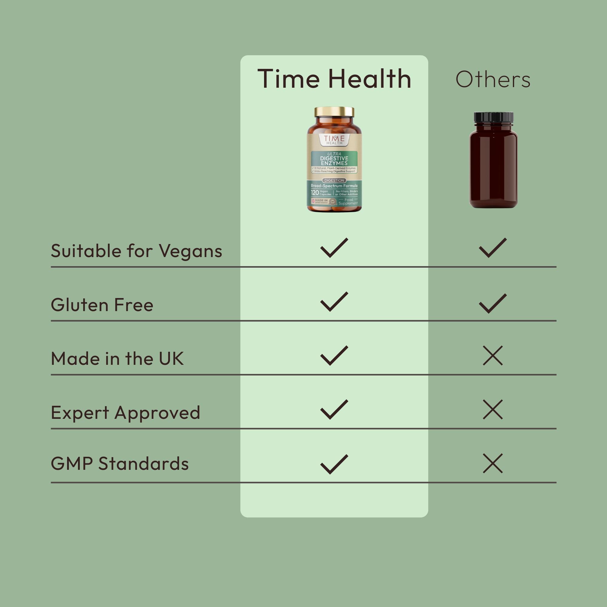 ✔️100% VEGAN WITH NO FILLERS, BINDERS OR ADDITIVES. At Time Health we believe in clean nutrition which is why you won't find any nasty stuff in our products including any binders, fillers or additives - unlike some of our competitors.